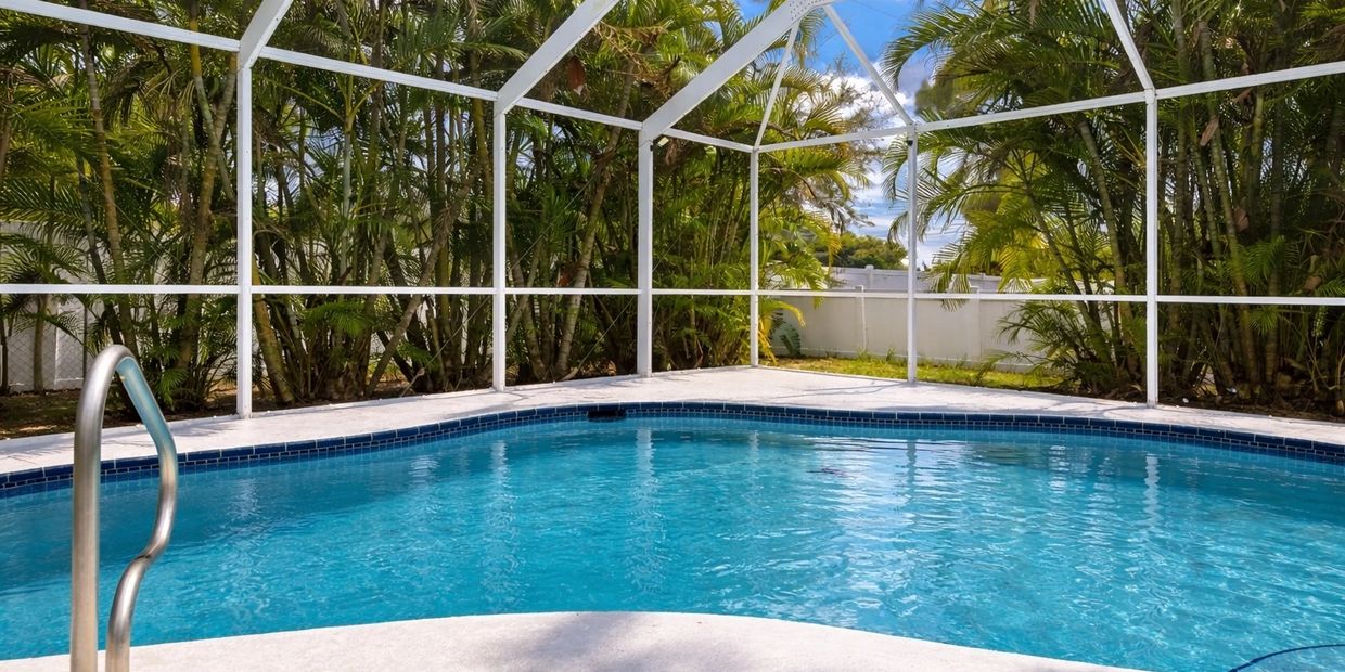 The heart of the home flows seamlessly into the outdoor area, where a screened-in heated pool creates the perfect space to relax or entertain. The pool is equipped with a new motor installed in 2022, and the surrounding vegetation around the screen enclosure adds an extra layer of privacy, making the backyard feel like a private retreat. With desirable east exposure, the outdoor area enjoys natural light throughout the day.